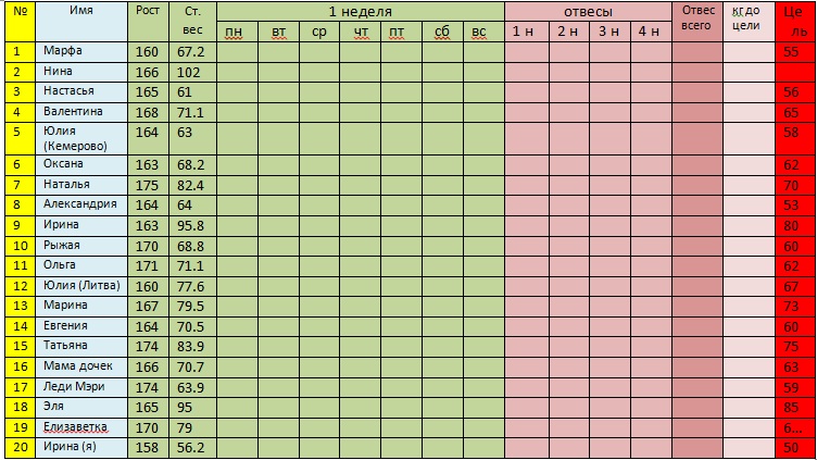 По мере возможности жду ваших отчетиков в комментариях.Просьба указывать номер, соответствующий вам в таблице и ваш отвес или