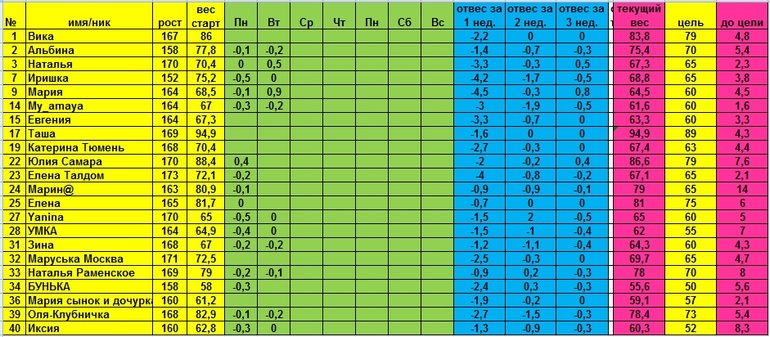 Всем приветик! Я номер 39 отвести у меня аж в -400 грамм))). Вот всегда бы так.Всем удачи.