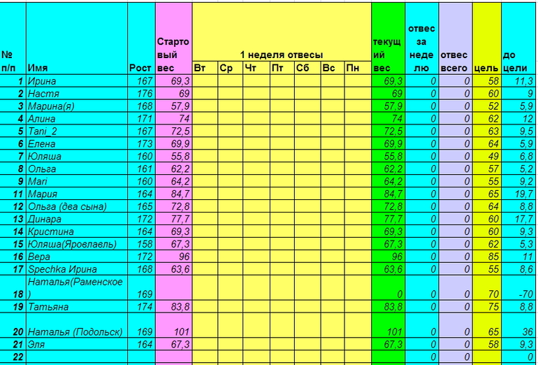 всем привет номер 12так уж получилось что день у нас начался в 4 утра и взвешивалась я в 4 утра-вес был прежним 72,8отвес 0