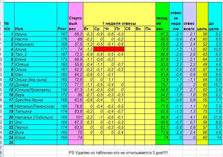 Всем приветик! номер 23 — сегодня +900! но это точно все лишняя жидкость, я просто говядину сильно пересолила! весь вечер пила воду, утром встала как китаец! Косяков не было, надеюсь завтра на отвес!