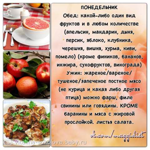 Каждый день1-2 яйца, 1/2 грейпфрута или апельсина.