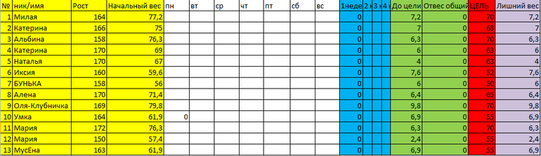 , отчеты по номерам, т.к. много девочек с одинаковыми именами.И мой отвес: №10 вес 61.9 отвеса нет, думаю из-за позднего ужина((((