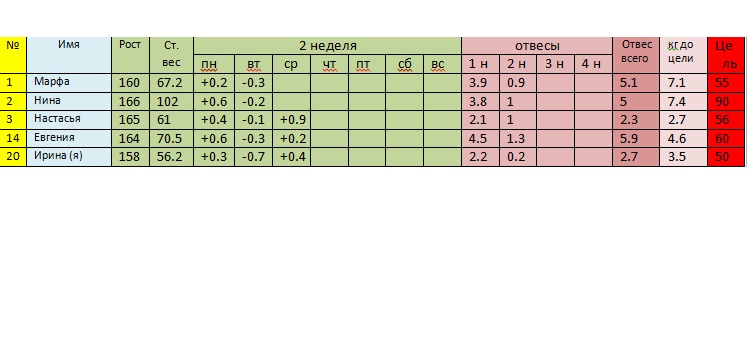 Привет!номер 14вес 64,1отвес 500грдевочки, я 4 неделю заменю на 1ю.Попробую так)))) да терпеть не могу 4 неделю, непонятно, как, что когда есть....