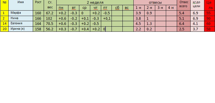 Девоньки, привет!номер 14отвес за вчера +1,3(((( пересолила овощи, наверное, вода задержалась....вес сегодня 64,4но вечером накосячу, у меня праздник, а в понедельник я с 1 недели