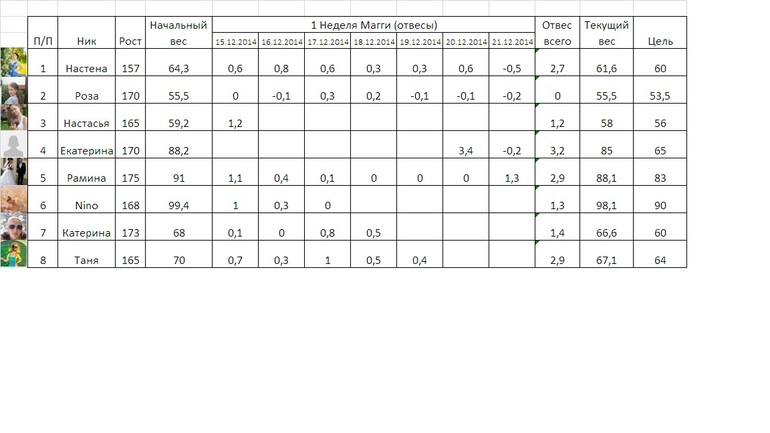 Дневник худеющей:)Всем привет! Ничего не успеваю! В табличке есть потери и новенькие=) Закрываем табличку за прошлую неделю!