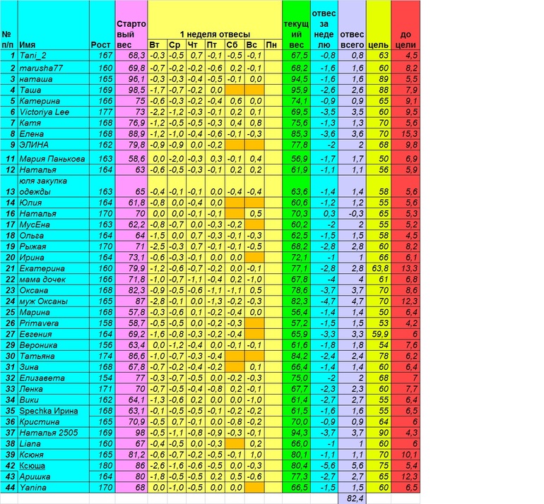 Всем приветик!№44 ухожу на -60, хочу кашу утром)! Я себя ЛЮБЛЮ)))!!! Всем хороших результатов, вы молодцы! Спасибо Танюше!!! Таша, Элина, и все остальные мои красавицы, я слежу за вами!  super_smilies086.gif