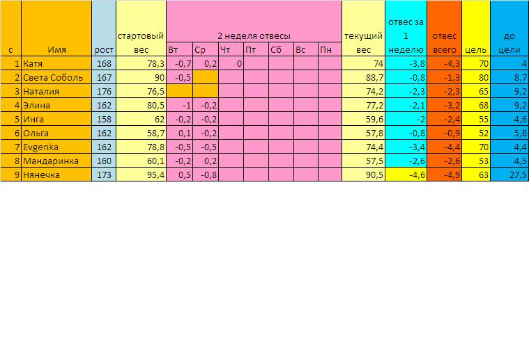 Катя!я номер 8. Запиши за чт (вчера)- отвеса 0! Общий вес так же 57,00!