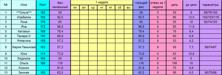 Привет! Я номер 5) вес 78,6, отвес -800. Идем дальше, это только начало)))