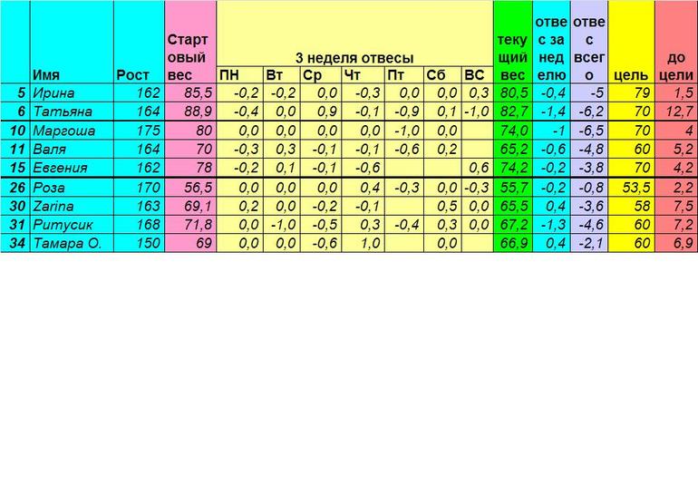 Привет. N10 Пишите на сегодня -1 это в общем за 3 дня. Вес 73))) Начинаю ненавидить Джиллиан и ее прыжки... 9го был день рожденья думала сорвусь,а нет,все отлично, отмечать будем 14го вместе с днем Св. Валентина)))) Всем хороших отвесиков и отличного настрения???