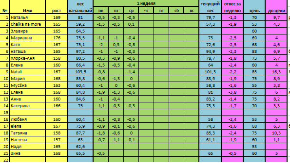 16. Добрый день девушки, мой вес 57,9. Итого -100 грамм))) наконец заветная семерочка))) но до цели еще далеко....