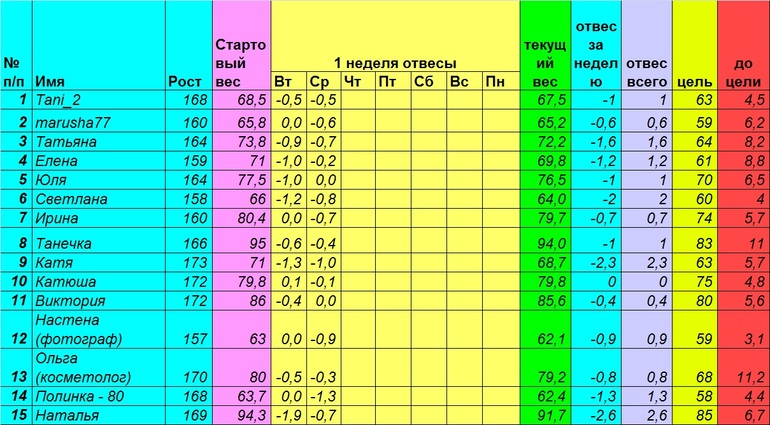 Результаты хорошие, молодцы! НО, очень важно: скоро большие отвесы зкончатся и начнутся длиииинные маленькие отвесы. Тут главное - не расстраиваться, а понять, что просто вышла лишняя жидкость и вы наконец начали именно худеть:)![]()