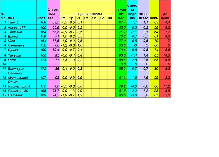 на фото не яИ не надо отчаиваться, если отвесы уменьшились или вес встал! Все мы разные и организм у каждого приспосабливается по-своему.