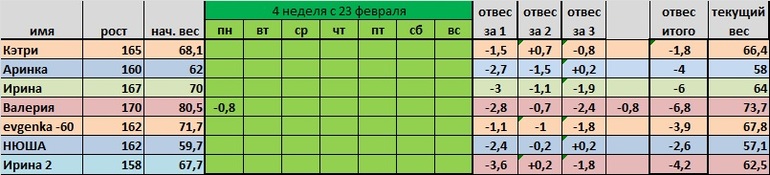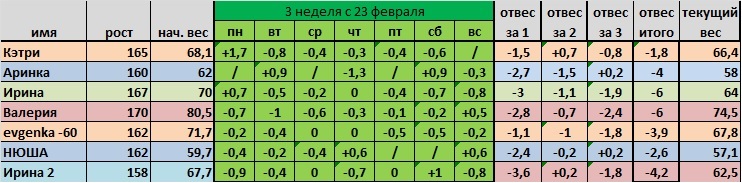 вставляю две таблички с результатами третей недели и новую к заполнению....мы на финишной недели!