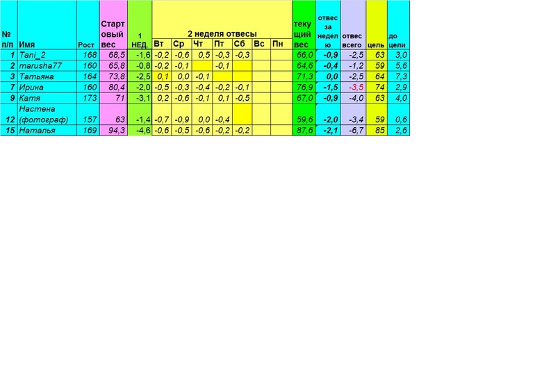 Насть, помечу все в завтрашней табличке.У меня так было один раз. Отекла и был привес 0,7