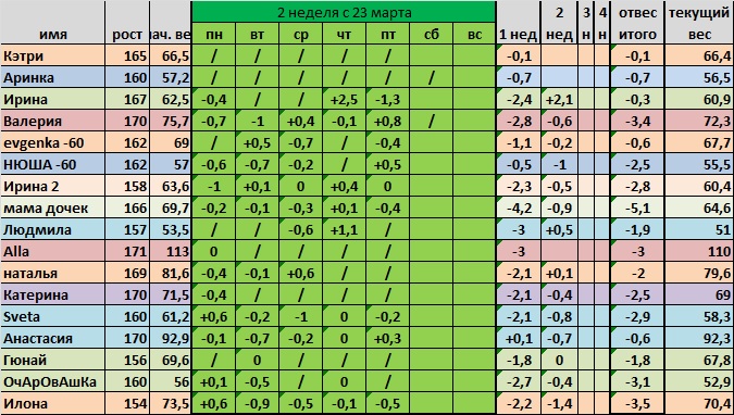 Я наверное кинг конг((( как сорвалась, так и пошли срывы((( на весы не встаю, завтра на первую неделю пойду. Можно я с вами в табличке останусь?))