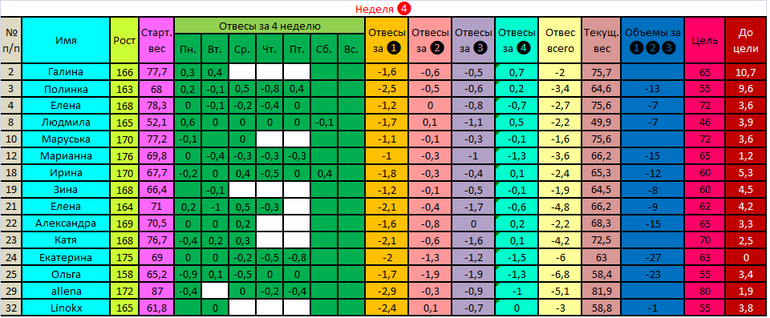 P.S. За 4 недели мы все вместе сбросили 51,9 кг и лишних 137см!!!!
