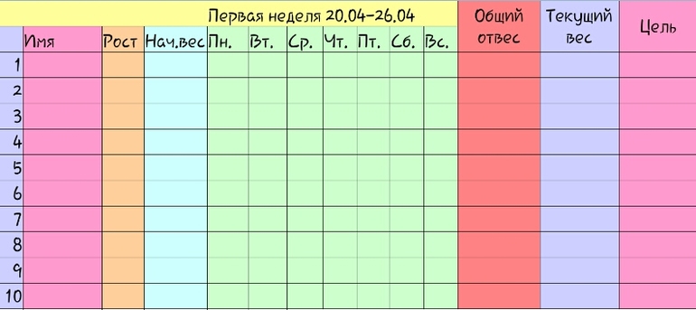 Девочки-красавицы, кто хочет начать с понедельника, присоединяйтесь!!)) Можете сразу писать рост, желаемый вес, начну заполнять табличку!) Начальный вес пишем в понедельник в отдельном посте.