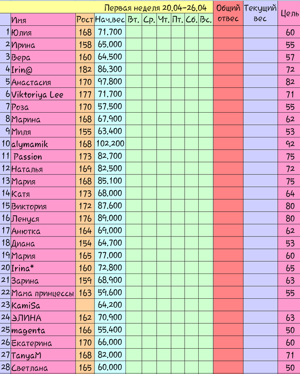 Проверяем свои данные в табличке, вдруг где ошиблась. И давайте радуйте меня своими отвесиками))