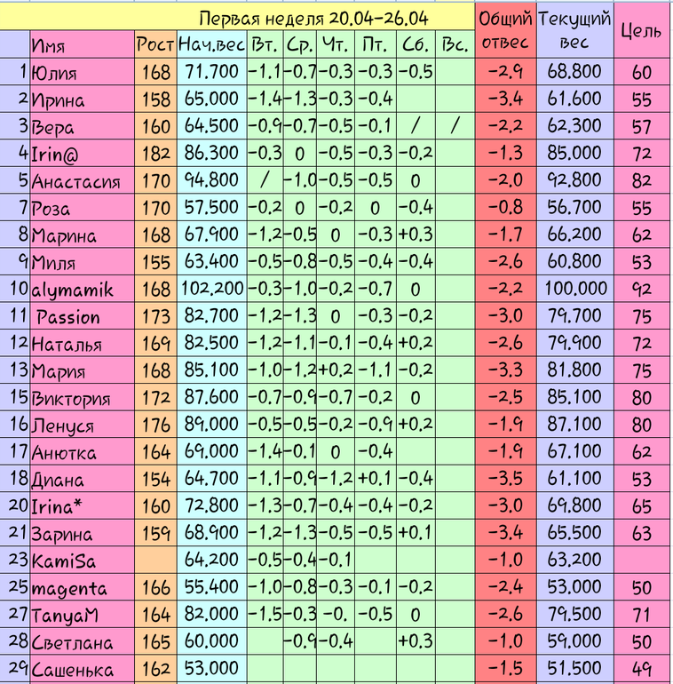 Наши отчеты и результаты:)Доброе утро! Вот и пришел последний день первой недельки... А с отвесами у нас какая-то беда...) вчера табличку заполняла и в ужасе была) главное не сдаемся, продолжаем в том же духе! Лучше медленно, но верно, чем не делать вообще ничего..