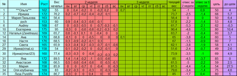 наша табличка поредела, некоторые девочки ушли а есть и те кто пришли, Маш вливайся в наш строй твой номер 3)![]()