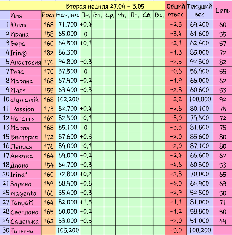 Привет! Номер 12 в плюсе((( +100, вес 79,6, обидно. Причин не вижу((( идем дальше!!!