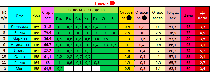 Девочки, всем привет. Я вернулась с дачи. Ничего себе, как поредели наши ряды. Кстати есть и положительный момент, что забыла взять на дачу весы, контролируешь себя более четко (но были и маленькие косяки). И итог за неделю, тадаааммм №3 -1,3 вес 75,6.