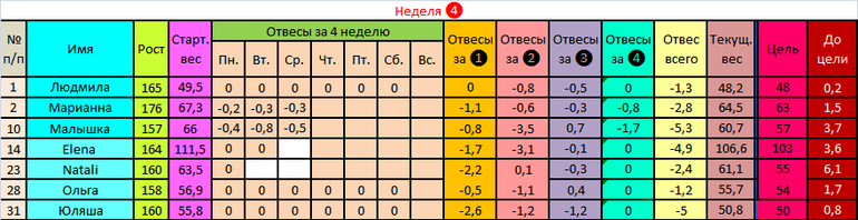 Наши отчеты и результаты:)Привет!!! Сегодня кучу дел, поэтому поздновато пишу и коротко. В этом посте отчитываемся за два дня, а в воскресенье итог, завтра не забудьте замеры!!!