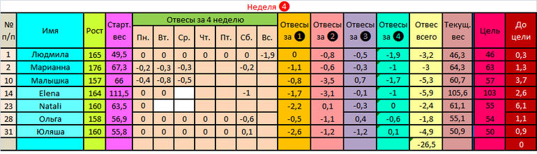 Люда спасибо огромное ,что вела табличку и подбадривала нас худеющих девчонок! Ты умница!
