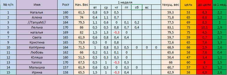 Привет, а мы уехали на выхи на дачу - тут весов нет.. Я тогда уже в понедельник утром отчитаюсь, ок? :) всем хороших выходных!
