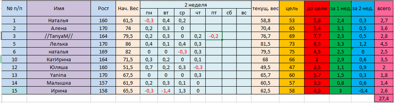 Привет! Я номер 6, вчера был жуткий косяк) мужу премию дали, отметили))) сегодня +500. Вес 80,0. Иду дальше. Косяк прощаю)))