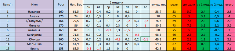 Вчера я себе сделала разгрузочный день. Итог-минус 0,5. Наша табличка сегодня такая: