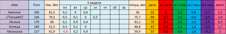 У меня сегодня минус 0,3. И наконец таки я сбросила то,что нажрала за зиму.Перед НГ меня было даже чуть больше-а именно 76,1. Вчера еще и сравнила свои замеры-и была в шоке. ОБ был 111см-сейчас 105,5. талия уменьшилась на 3см. Живот на 4см. Нога на 3см. И грудь тоже на 4см уменьшилась.Ну короче, что могу сказать-я в приятном шоке от себя. Потому,что я не могла подумать,что я смогу все это скинуть.