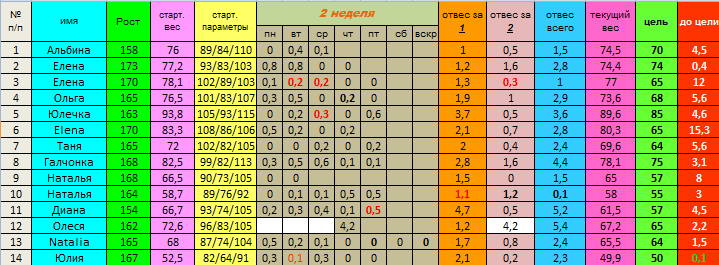 Доброе утречко) я номер 5,и я честно сознаюсь что косячила вчера безбожно и как итог +900гр,вес 90,5кг,но сегодня взяла себя в руки и сказала сама себе,что никакие проблемы не должны мешать идти напролом к мечте))) я в строю))) кстати я иду 1212,прошлый раз сорвалась именно на 3 недели,когда ГВ особенно очень голодно на ней и мяса хочется...И кстати,Наташ,там у меня общий отвес не сплюсовался,проверь пожалуйста)))