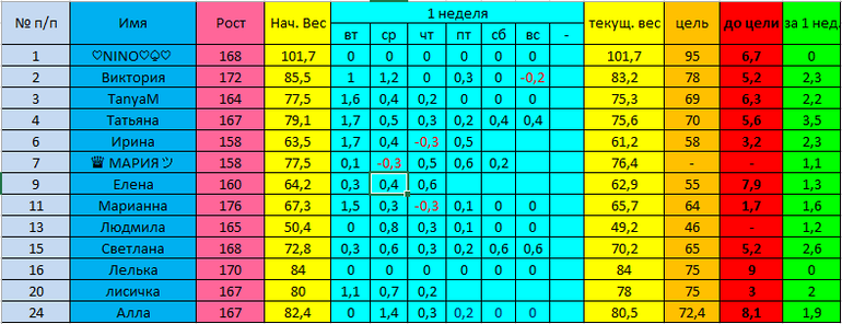 Наши отчеты и результаты:)Всем привет. Началась вторая неделька, а нас уже половины нет. Настраиваемся и идем до конца! Пишите ваш номер и отвес.