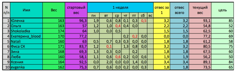 Наши отчеты и результаты:)Девочки, мы приступаем ко второй неделе!!!! Вы только задумайтесь, мы маленькие жрунчики, целую неделю не ели ничего лишнего, а только то, что нам сказали! Ну разве мы не молодцы?! Разве мы теперь не справимся со второй неделей?! И мыыыыыыы, начинаем!