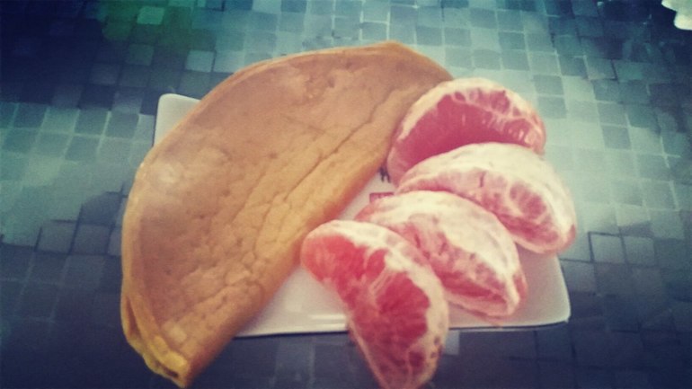 Я делаю омлет, Два яйца взбиваю и жарю на раскаленной сковороде. Выходит блинчик такой и внутрь можно положить апельсин. И с кофе норм) или без апельсина. Периодически варю всмятку яйца, тоже разнообразие)