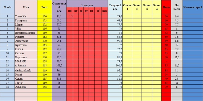 Всем привет!!! Я номер 14. Вес сегодня 94,500 и того - 1,600 :), очень приятно, хоть и понятно ...что вода это :)