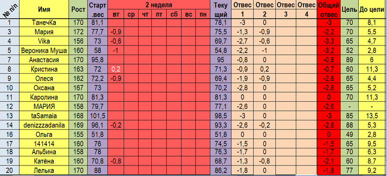 П.С.: Я выделяю привесы в таблице, если кому то не по душе, напишите, не буду.))))