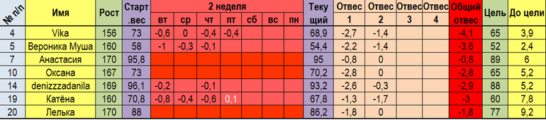 Девочки нас осталось 7 человек, а еще пол пути даже не пройдено, очень не хочется остаться одной, тогда не будет смысла делать все эти посты и таблицы....