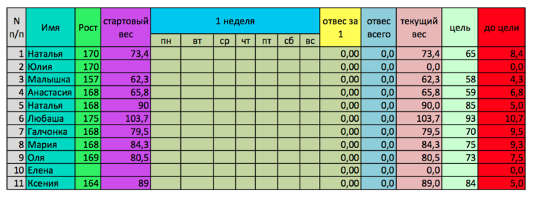 Наши отчеты и результаты:)Добрый день! Набралась у нас приличная команда, теперь стараемся её сохранить до самого конца))) Вот наша таблица, проверяемся: