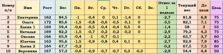 Доброе утро. Я номер 10. У меня +500гр. Жесть... Наверное овощи вчера были соленоваты, да и запор (извиняюсь) думаю в этом все дело. Т.к. Косяков нет, ем последний раз в 17.00