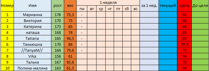 Всем привет.Вы как? Я вчера ела только обед-это были груши.Очень болело горло и могла пить только чай.Сегодня уже лучше. Проверьте, пожалуйста табличку. И пишите ваш номер и отвес на сегодня. Всем удачи