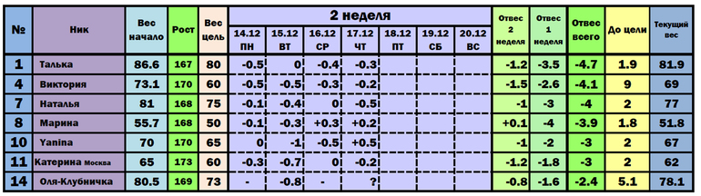 Наши отчеты и результаты:)Девочки привет! Хороших выходных, не забывайте, что скоро Новый Год и наши цели уже близко!