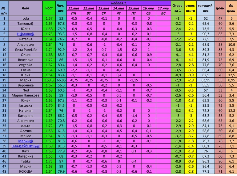 наша табличка: (жду в понедельник, тех кто не отчитался за 2-3 дня)