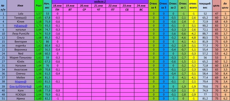 Привет-привет, как ваше настроение? Водичку пьете? Мой вес стоит, а я даже не обедаю (не успеваю на работе), но не расстраиваюсь, на 3й недельке сдвинется! Возможно, мне необходим усиленный спорт.