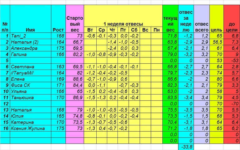 Вот и подходит к концу наша первая неделя. Результаты у всех хорошие. Продолжаем в том же духе.