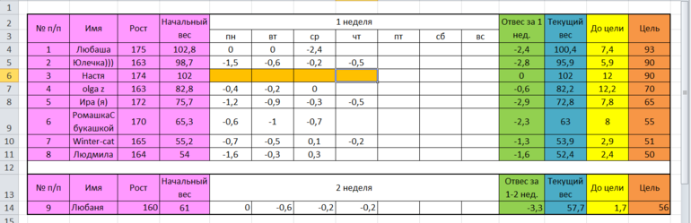 Наши отчеты и результаты:)Девочки, продолжаем!