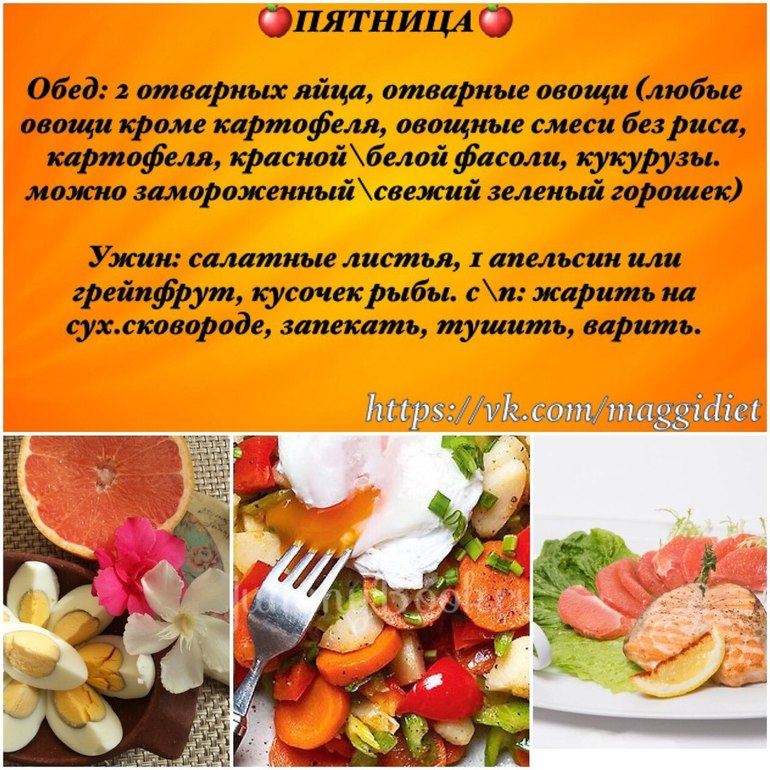 ● Ужин: Рыба - вареная или жареная, салат, апельсин или грейпфрут