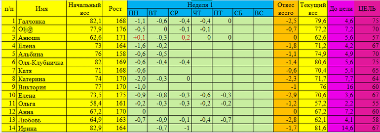 Наши отчеты и результаты:)Всем доброго субботнего утра) Что то наши ряды редеют, на следующей недели буду табличку нашу,наверное, подчищать, очень жаль, а так хорошо все стартовали ((((