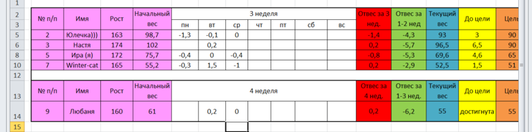 Наши отчеты и результаты:)Всем привет! Наша табличка:
